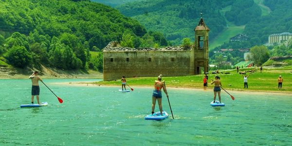 Located an hour’s drive from Skopje is Lake Mavrovo, again a man made lake that sits on an altitude of 1220m (4000feet) in National Park Mavrovo, a true challenge to every nature lover. Thanks to the view of the green shades of mountain Bistra, fresh airand the famous flooded church St. Nicolas, this lake is one of the top SUP destinations in the country.